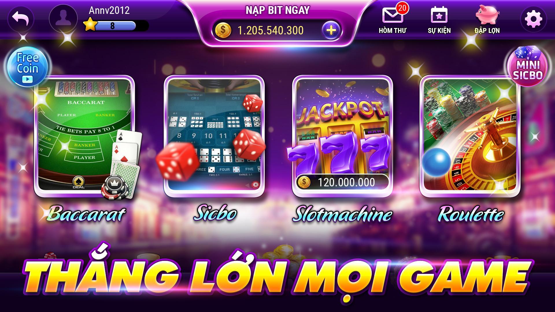 Nossos jogos incluem muitos jogos emocionantes, como: Sicbo, Baccarat, Roleta, Slots, Blackjack ... tudo em um